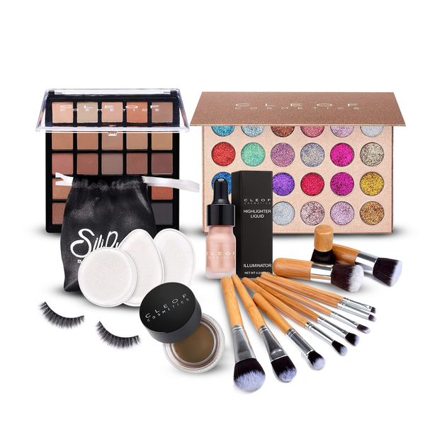 What it is: A set containing everything you could ever wish for! Complete from brushes, sponges, eyeshadows, pressed glitter, brow pomade to eyelashes and highlighters. What it does: Create smashing day to night, glam or natural makeup looks with this bundle. This...